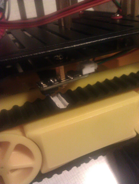 Выглядит все это дело как то так http://goo.gl/KU3jB, а черновой код можно посмотреть тут https://github.com/aysheka/Spy Вам нужен этот кусок кода: Код (Text): #define LINE_TRACKER_PIN 0 // pin 2 #define LINE_TRACKER_STEP 6 // while label interruot (in cm) volatile int moveDirection = 0; volatile int distance = 0; void setup() { attachInterrupt(LINE_TRACKER_PIN, lineTracking, RISING); } void lineTracking() { int step = 0; if(moveDirection == MOVE_BACK){ step = 0 - (int)LINE_TRACKER_STEP; } else if(moveDirection == MOVE_AHEAD){ step = (int)LINE_TRACKER_STEP; } distance = distance + step; }